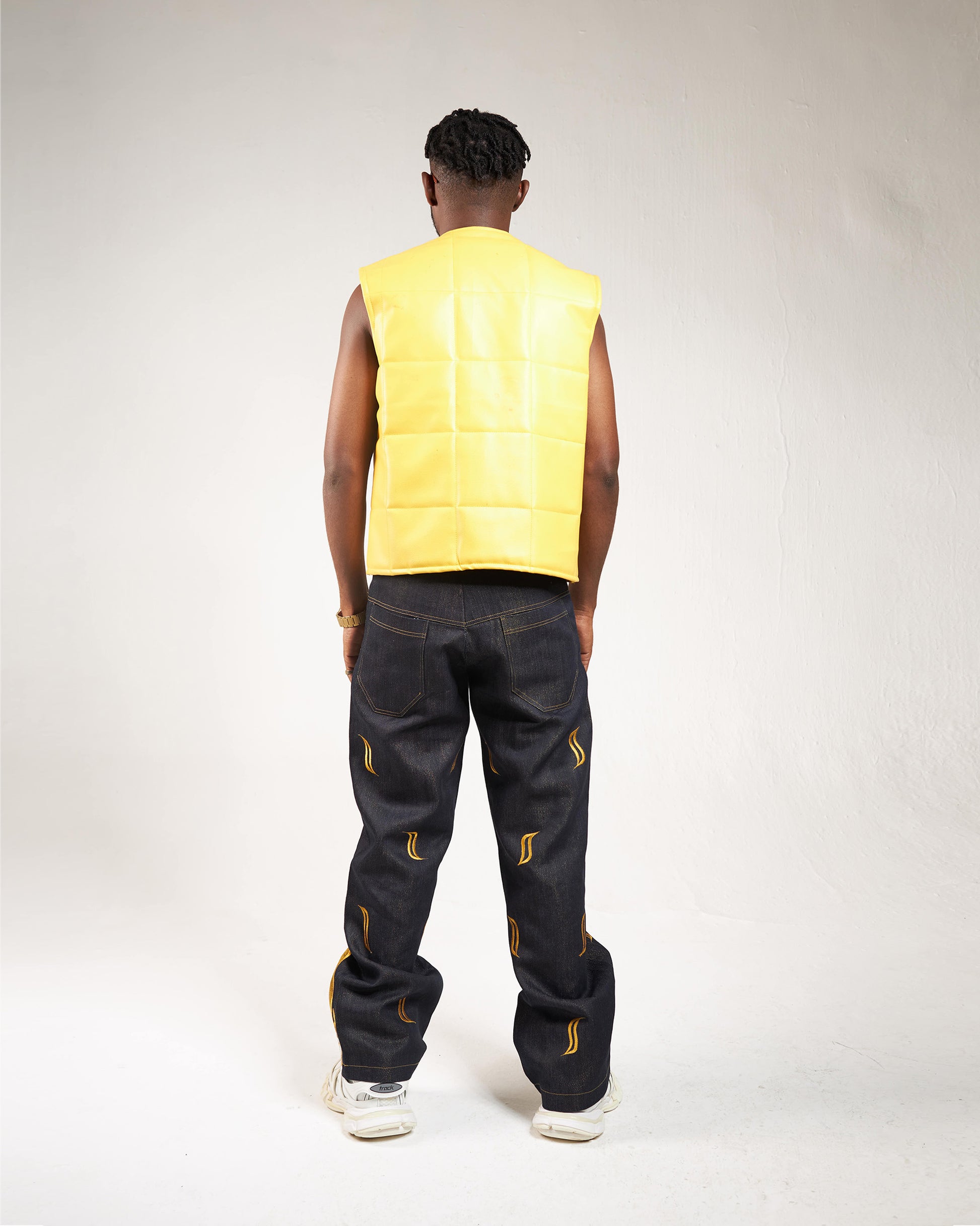 quilted padded gilet jacket from FIRST TRIBE AFRICA featuring yellow, high-shine finish, quilted finish, sleeveless.